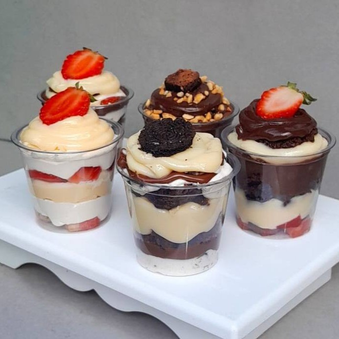 Experimente nosso Kit Degustação de Mini Copos da Felicidade com cada sabor do cardápio. Delicie-se! Peso 60 ml cada.