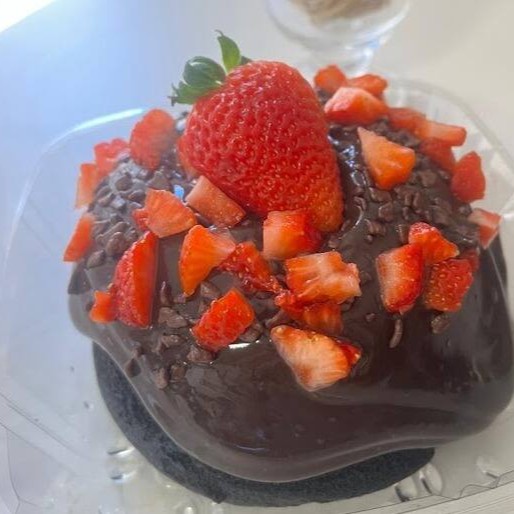 Massa macia de chocolate ou leite, cobertura de brigadeiro branco nobre e morangos frescos para um equilíbrio perfeito entre doçura e leveza. Uma explosão de sabor irresistível em cada mordida!