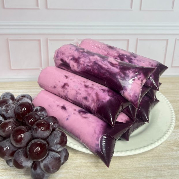 Geladinho Goumert de Uva feito com geleia caseira da propria fruta , cremoso , natural e cheio de sabor . Aquele geladinho que lembra infancia , mas com toque goumert ! aprox 130gr