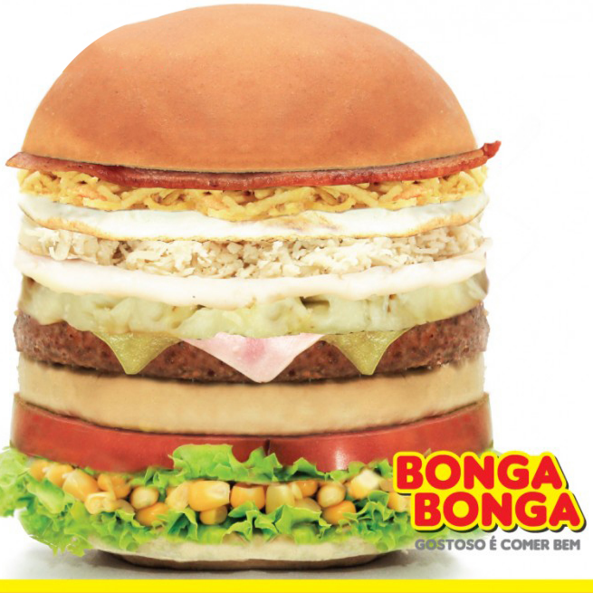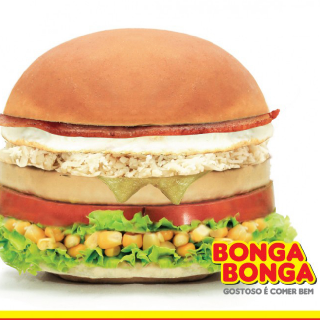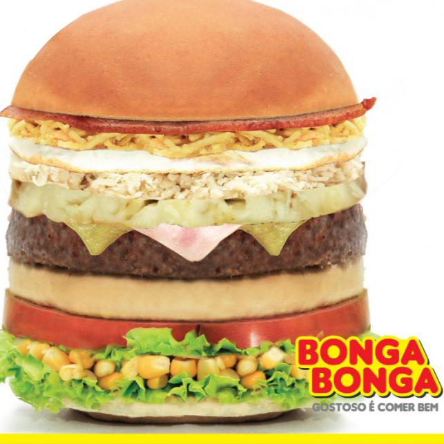 Pão, carne, bacon, ovo, queijo, milho, batata e salada