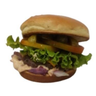 Pão de Brioche, 120g de carne, cheddar, cebola roxa, picles, alface americana, tomate e molho da casa