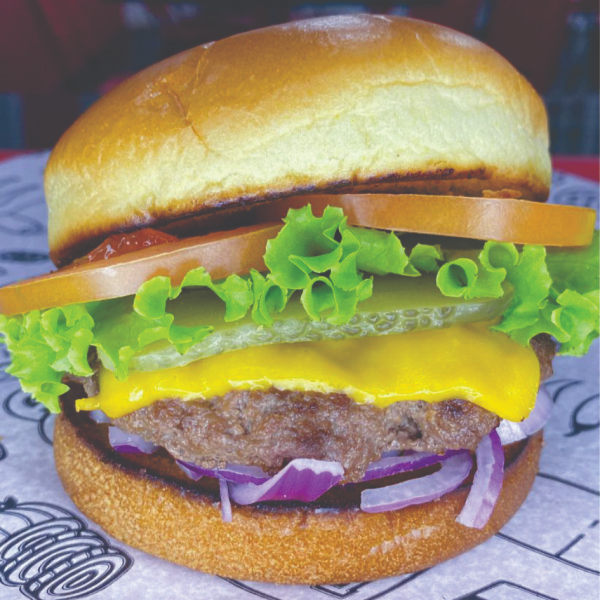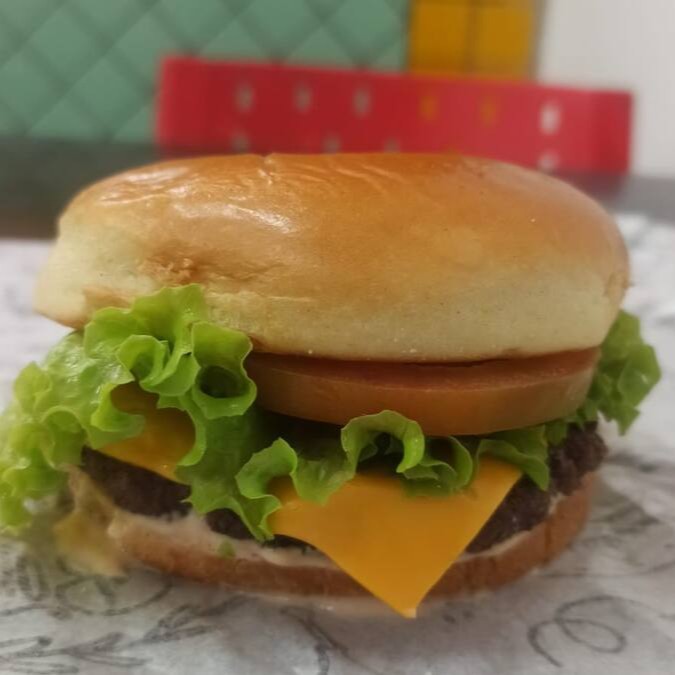 pão de Brioche ,blend de 120g de carne ,cheddar, alface americana, tomate e molho da casa