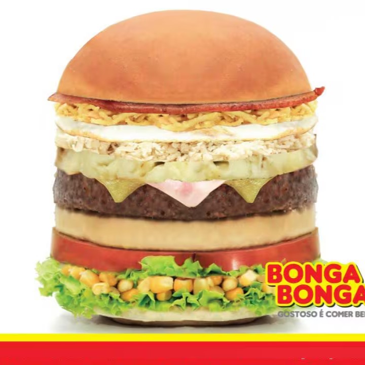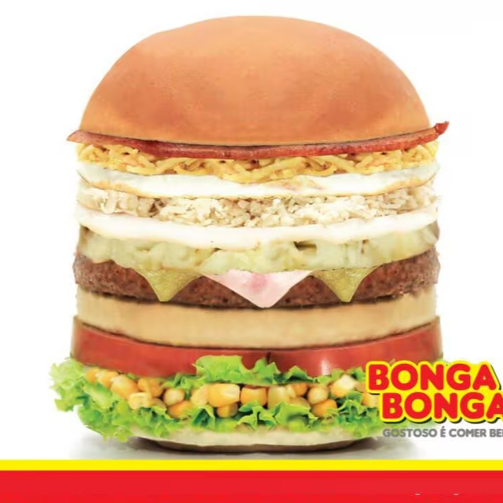 Carne, bacon, ovo, queijo, milho, batata, alface e tomate