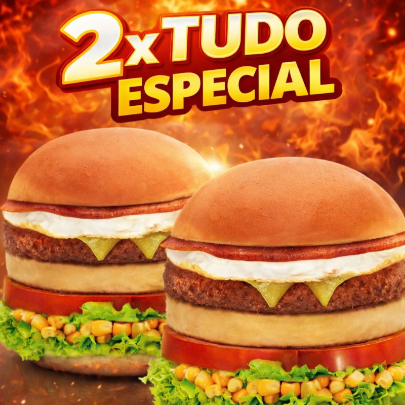 Cada x-tudo especial contém: Carne, bacon, queijo, presunto, ovo, batata, milho, abacaxi, alface e tomate