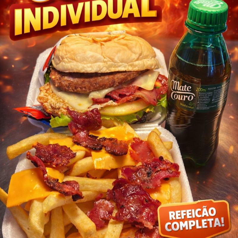 ideal para vc combo individual x egg bacon +Fritas c/cheddar e bacon e 01 mine pet 200 m (entrega rapida feita pela 99 food).