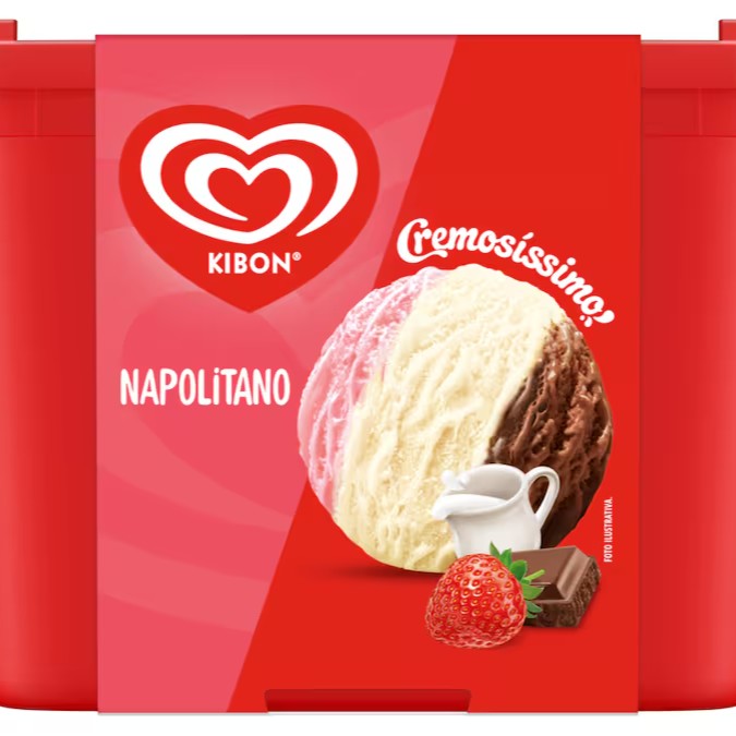 Cremoso e clássico sorvete tri-sabor Napolitano. O sorvete mais amado/vendido do Brasil. Morango, chocolate ou baunilha? Na dúvida, fique com os 3.
