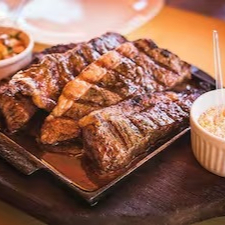 Nosso delicioso brisket acompanha Arroz branco, feijão carioca, farofa de bacon, espaguete chips separada.