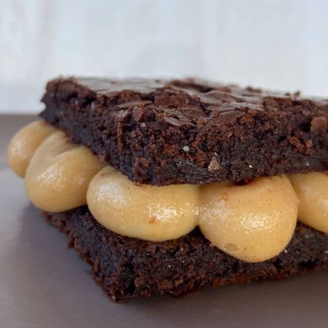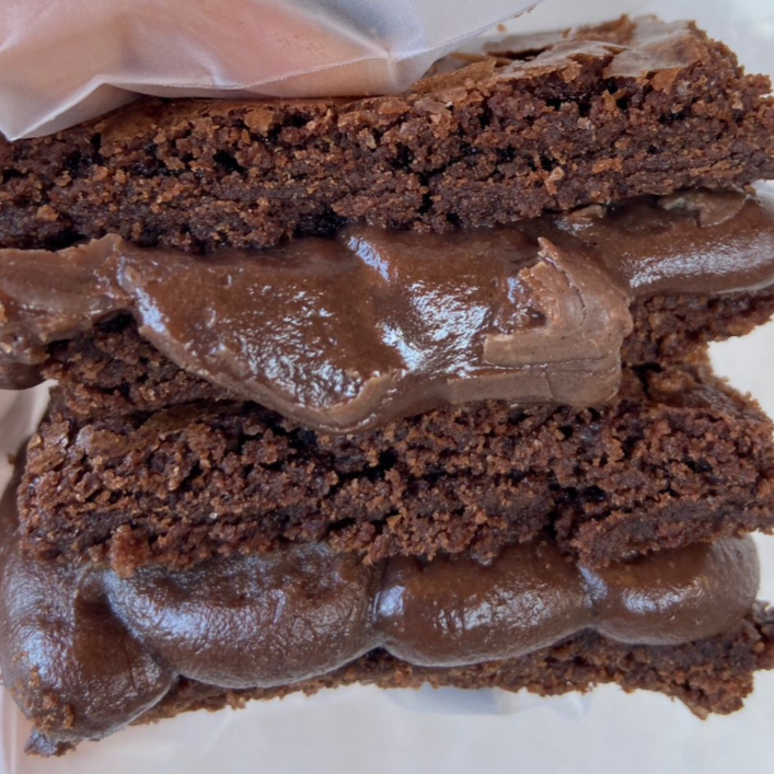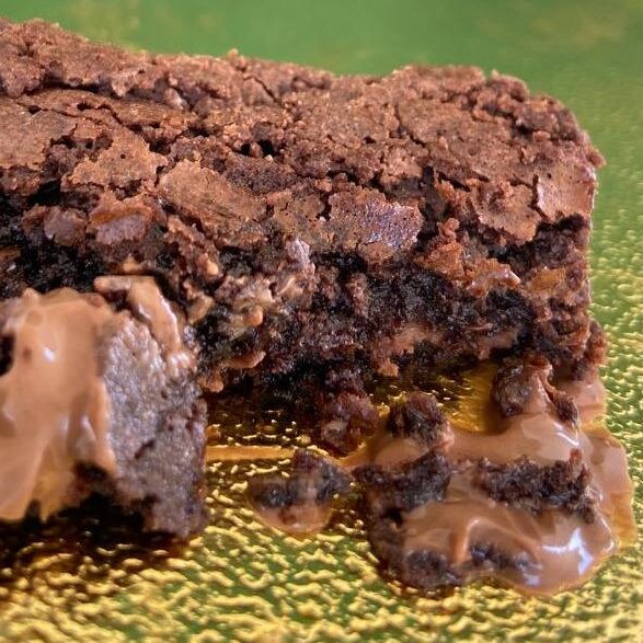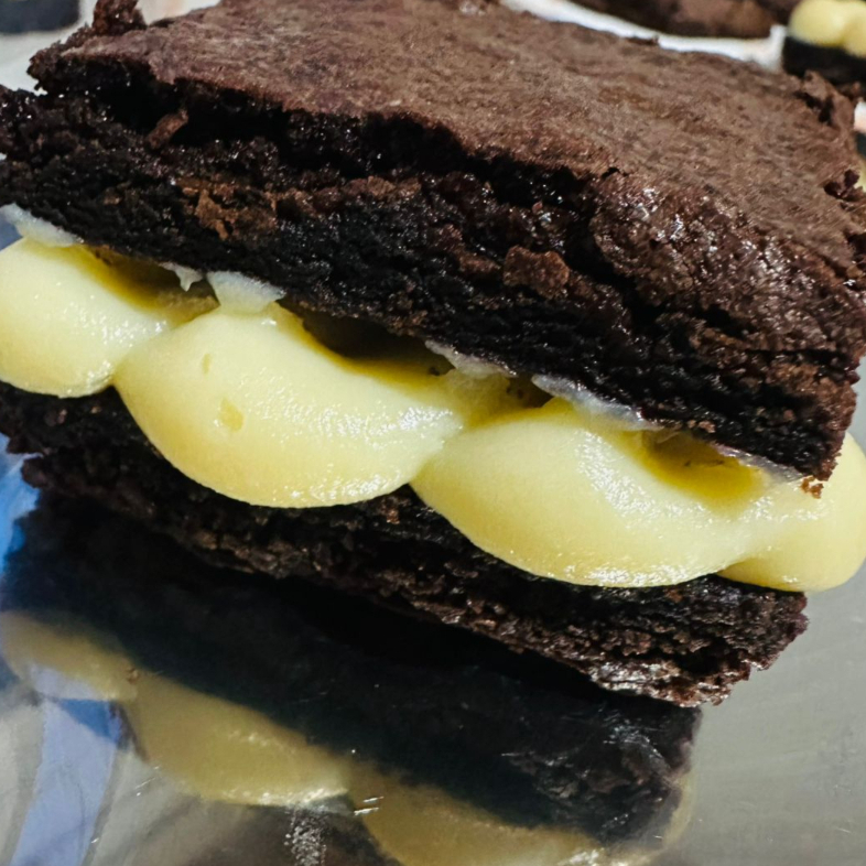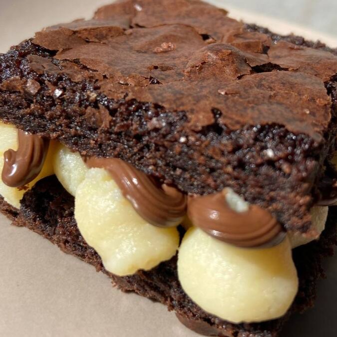 Brownie macio e chocolatudo, recheado com brigadeiro de Ninho e Nutella. Cada mordida é uma explosão de sabor!