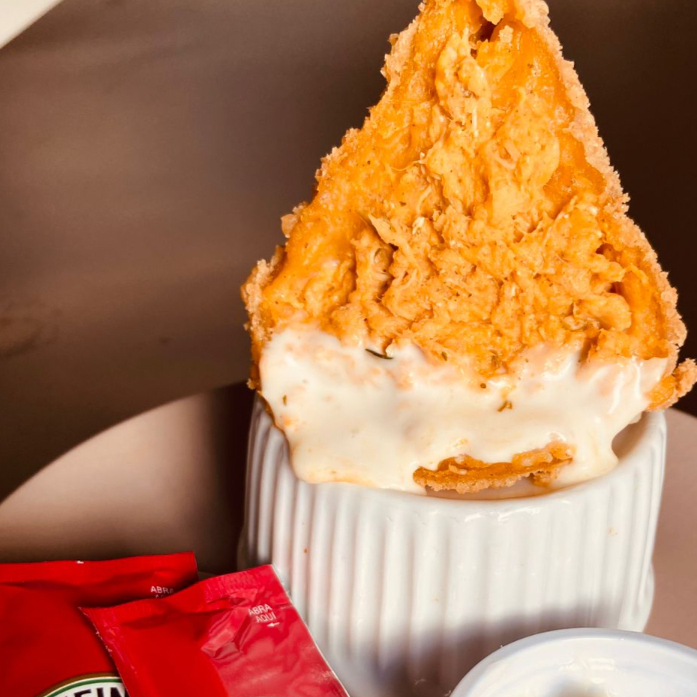 Super crocante por fora, recheada com frango desfiado temperado e cremoso com requeijão. Frita na hora! 150 gramas