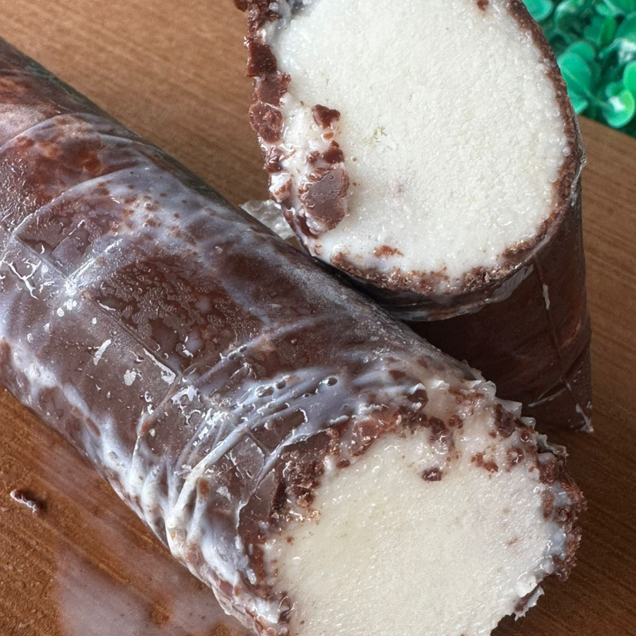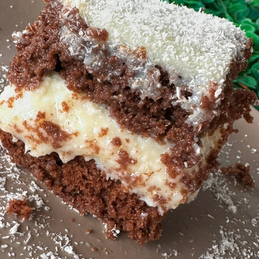 Massa de chocolate super macia e molhadinha, nosso recheio de coco irresistível, coberto com cremoso de coco e coco. Tudo isso embrulhado em papel alumínio!