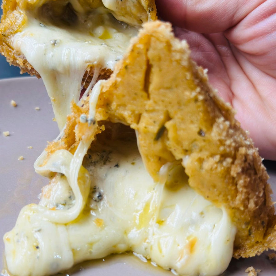 A combinação de mussarela, provolone, gorgonzola e requeijão. Tudo isso na nossa massa crocante!