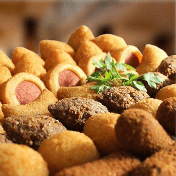 Deliciosos salgados de festa, Salgados: 20g feitos com ingredientes de qualidade