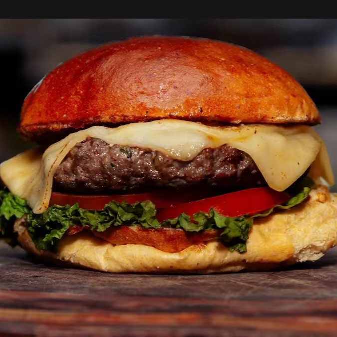 Pão de brioche, dois smahs burgers de 60g cada, queijo cheddar, alface crocante, tomate e molho artesanal caseiro.