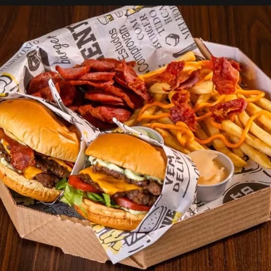 Escolha 2 Hambúrgueres preferidos + 2 molhos para acompanhar e para ficar perfeito escolha sua porção de fritas especial!