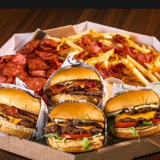 Escolha seus 4 lanches favoritos, batata simples, com chedar e bacon ou nuggets e 2 molhos favoritos