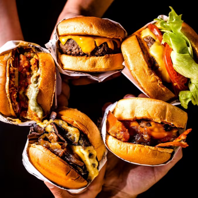 Escolha seu Double Smash Burger (blend de carne 70g) Acompanha batata frita ou nuggets e suco ou refri à sua escolha.