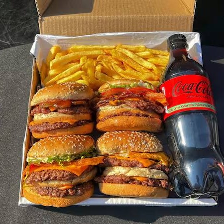 Combo especial com 4 burgers deliciosos feitos na hora. Escolha o lanche que preferir! Acompanhado de porção de batata frita, molhos especiais e Coca Cola Zero 600ml geladíssima!