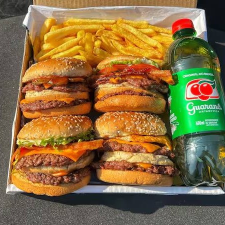Combo especial com 4 burgers deliciosos feitos na hora. Escolha o lanche que preferir! Acompanhado de porção de batata frita, molhos especiais e refrigerante Guaraná Antártica 600ml geladíssimo!