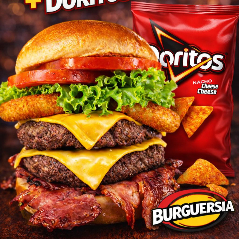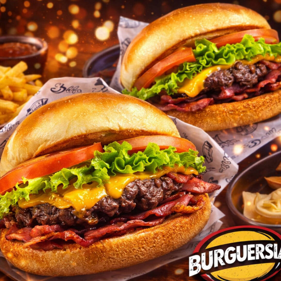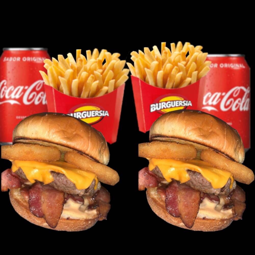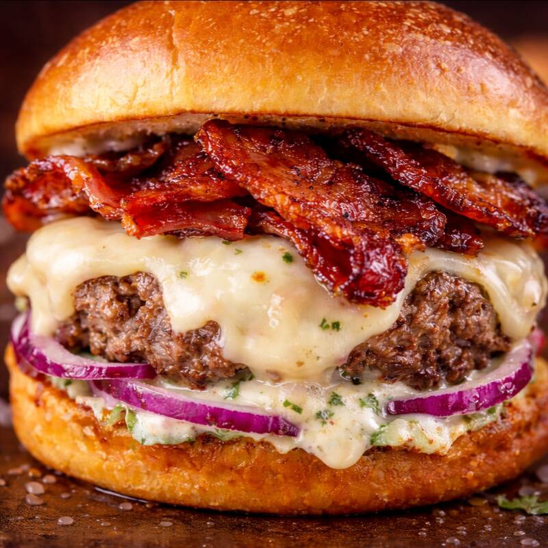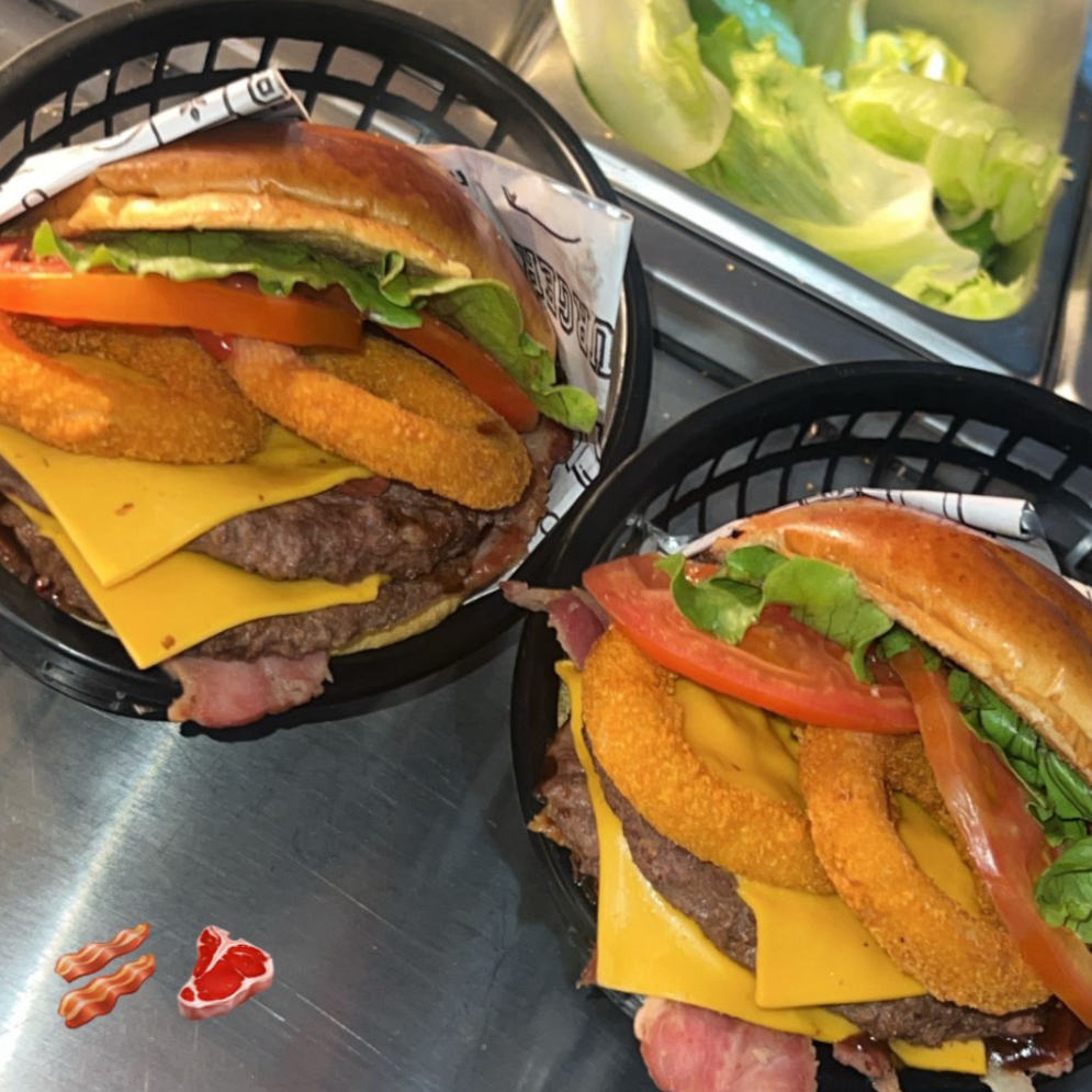 Sua melhor opção!!“🍔 Dois hambúrguer 100 % carne bovina 🥩!! Pão de brioche, 2 bland de 140g cada, cheddar fatiado, 2 onion , bacon crocante alface americana e tomate , sem dúvidas sua melhor opção .(Adicione o combo e leve Batata ondulada crocante+ refrigerante ) 🥇🛵🚀Entrega rápida feita pela 99 Food