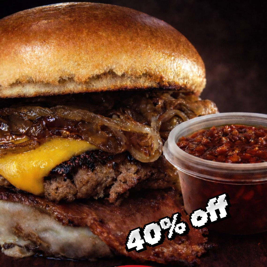 Pão de brioche, blend 120g, cebola caramelizada, bacon e molho da casa .