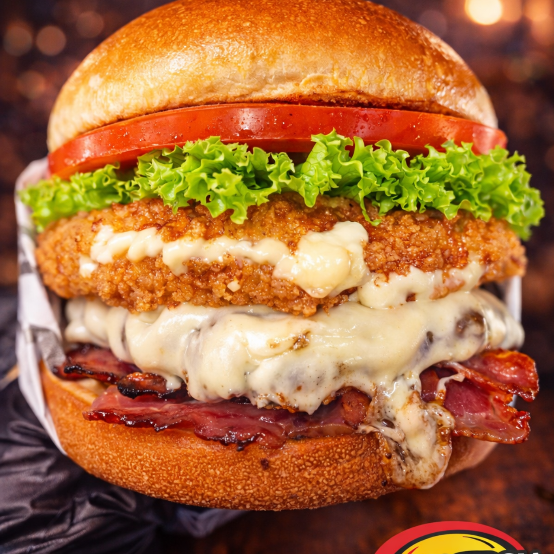 Mais vendido!!pão de brioche, 140g de Catupiry empanado e frito,bland de 140g bovino.muçarela, bacon 🥇🛵✅(entrega rápida feita gela 99 food )