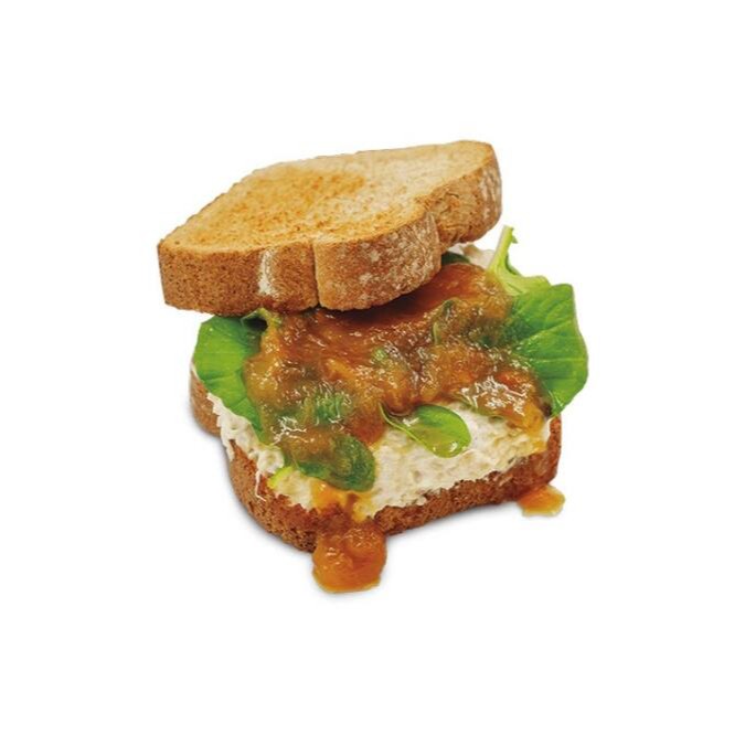 Experimenta nosso sanduba tropical feito com fatia de pão artesano e recheado com rúcula, geleia de manga e maracujá, requeijão e frango desfiado.
