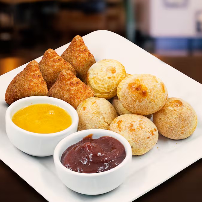 Uma porção irresistível com 6 mini pães de queijo e 4 mini coxinhas. Para completar, escolha seus molhos favoritos e saboreie essa deliciosa combinação!