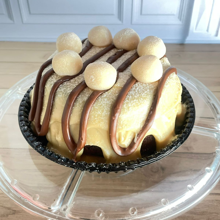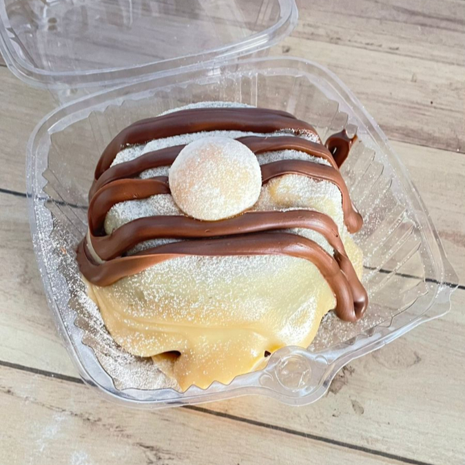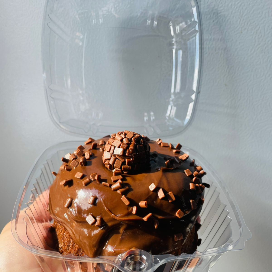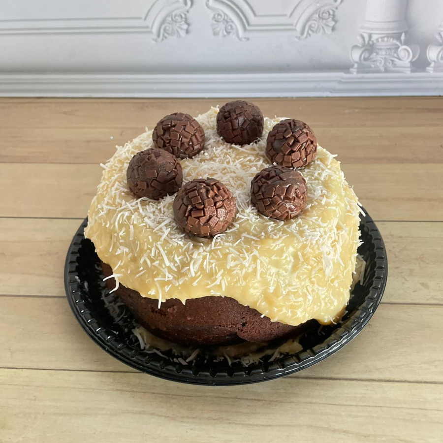 Massa de chocolate recheado com brigadeiro cremoso de leite ninho e Nutella. Finalizado com Nutella. Peso aproximado do produto 220 gr. a 240 gr. Conservar na Geladeira