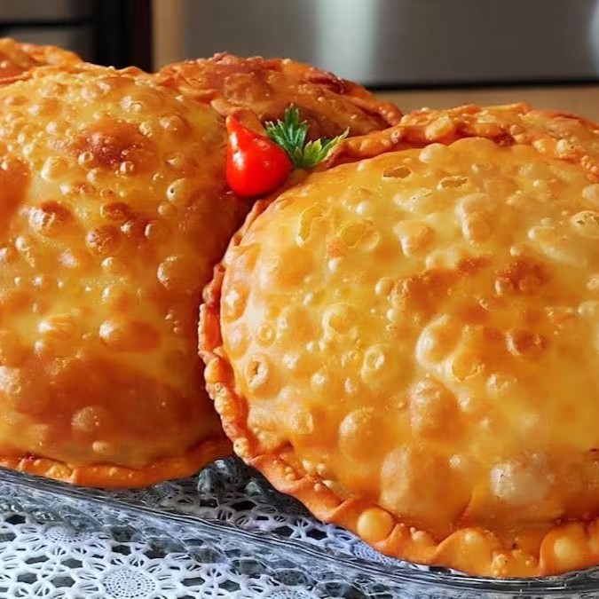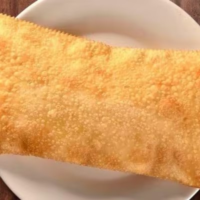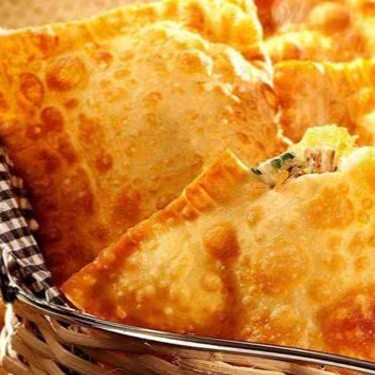 Pastel recheado com: cheddar, requeijão, creme cheese e muçarela.