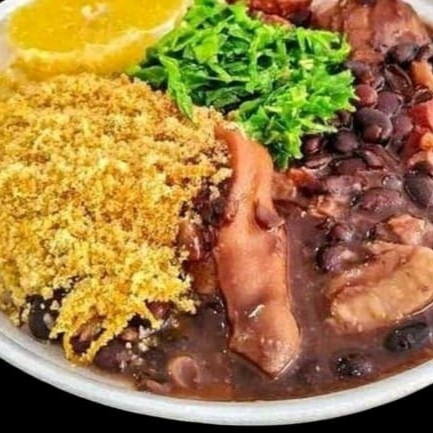 Feijoada completa +(farofa ,couve e laranja)separadamente.