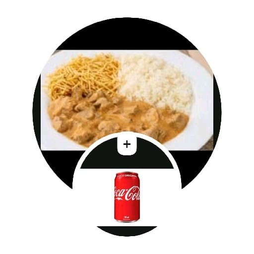 Strogonoff de frango com azeitona,milho e champignon,arroz e batata palha pequeno +coca lata