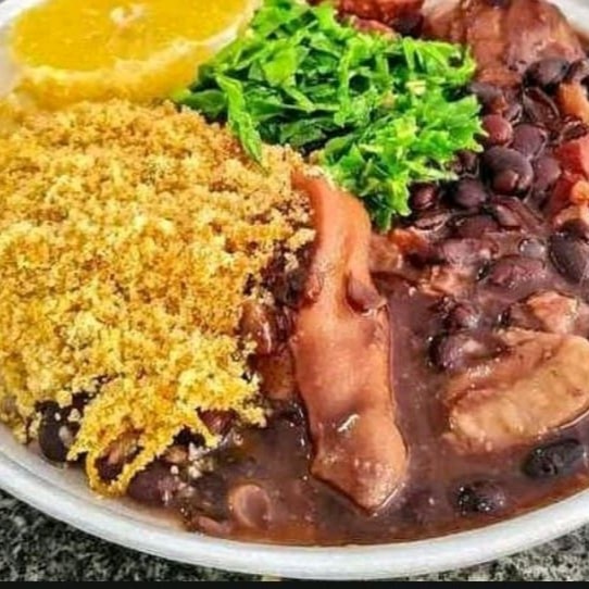 Feijoada completa +arroz+(farofa,couve e laranja)separados. 500grs