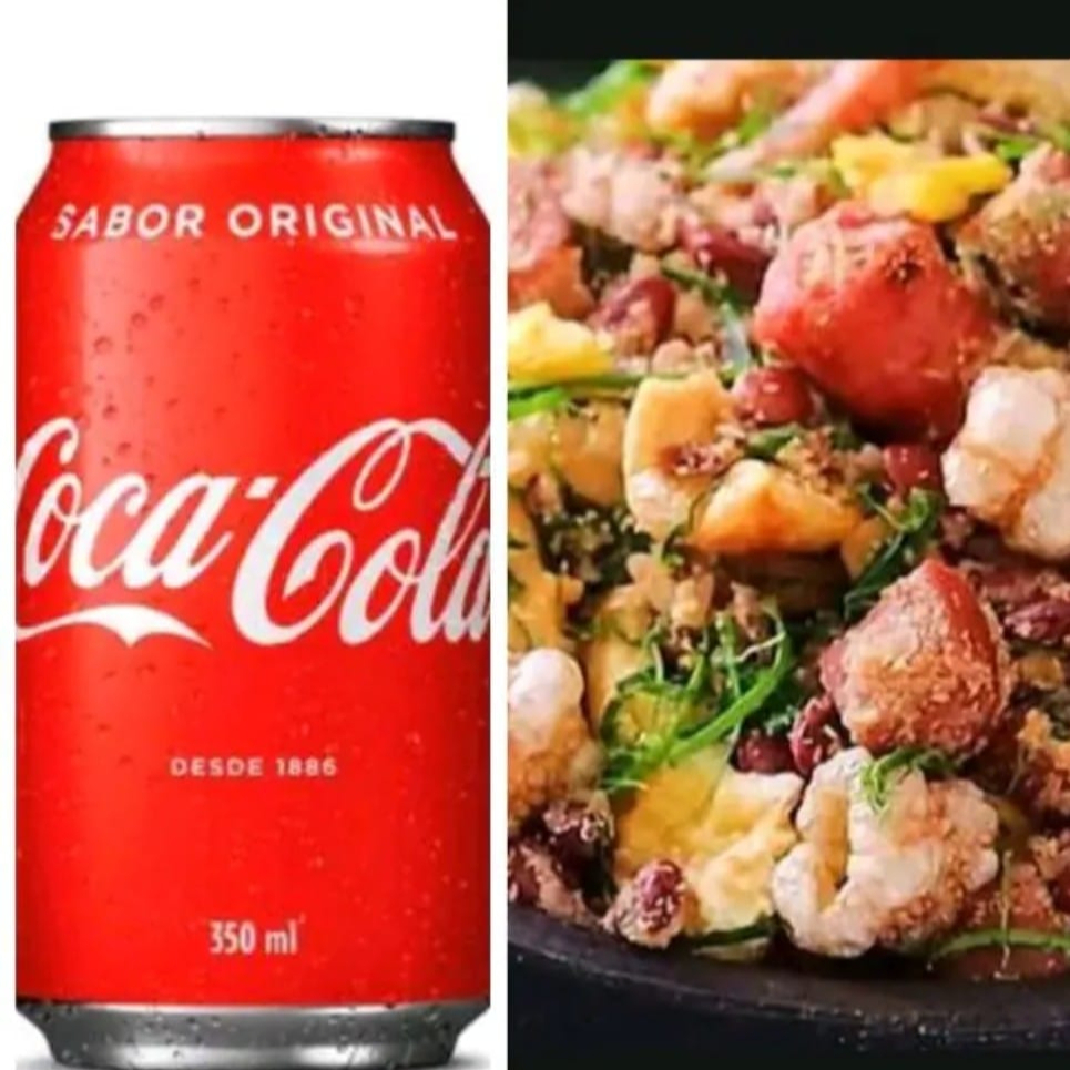 Feijão tropeiro,couve,ovo, torresmo,bacon, calabresa e pernil picadinho+arroz 750gr e acompanha uma coca lata de 350ml