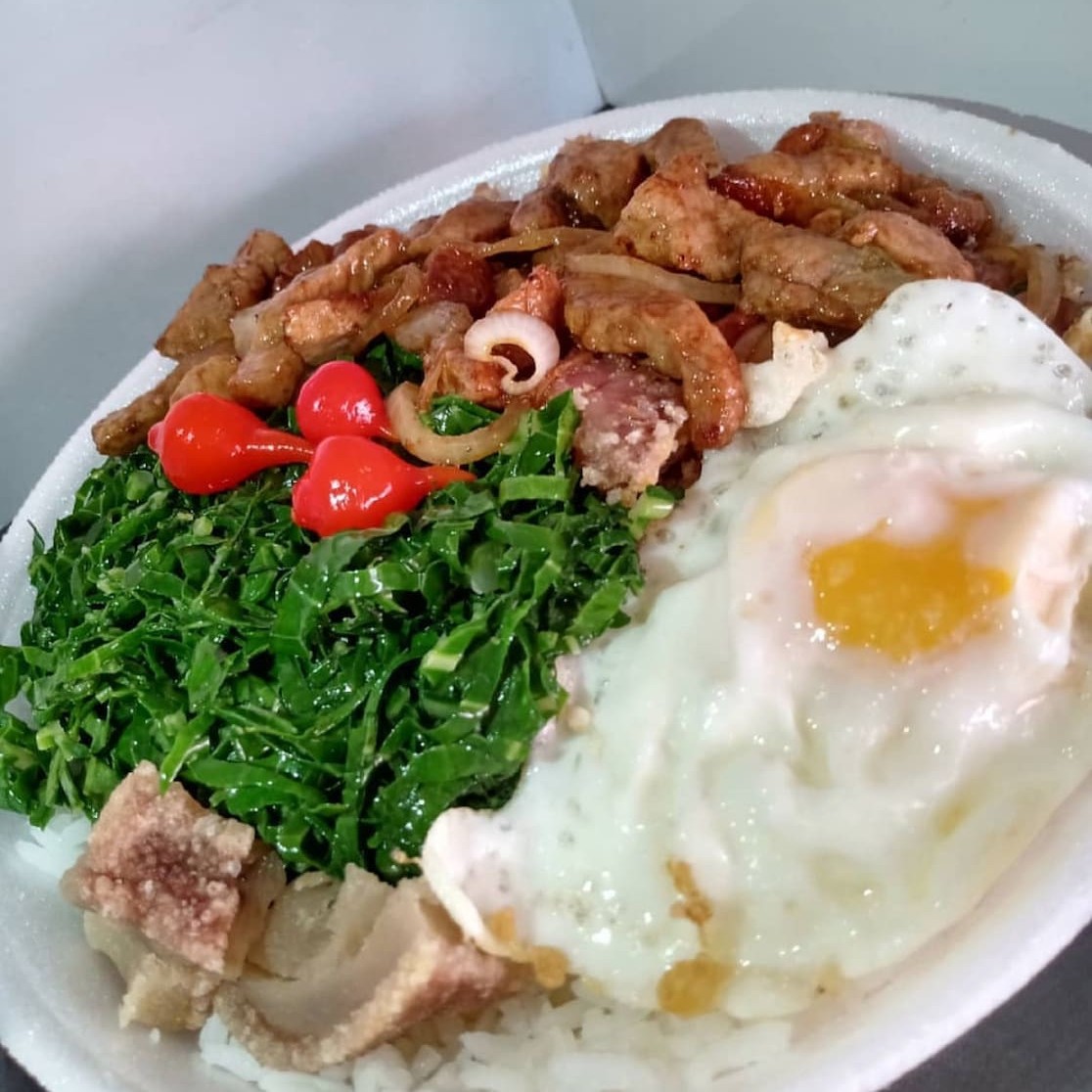 Nosso delicioso tropeiro acompanha : couve , ovo frito , pernil e tropeiro (ovo mexido , bacon, linguiça, farinha de mandioca, cebolinha , tempero caseiro )