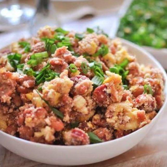 Dois marmitex grandes de tropeiro, arroz, ovo frito e linguiça + um refrigerante de 200 ml