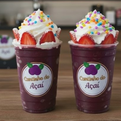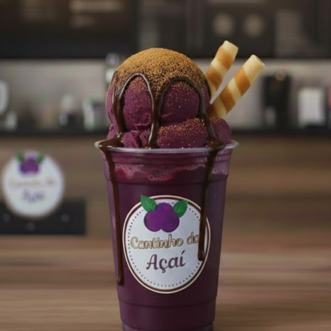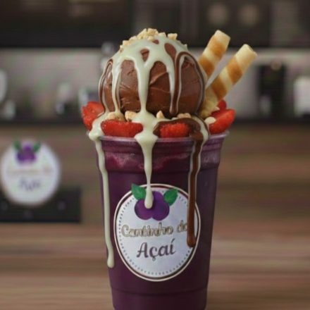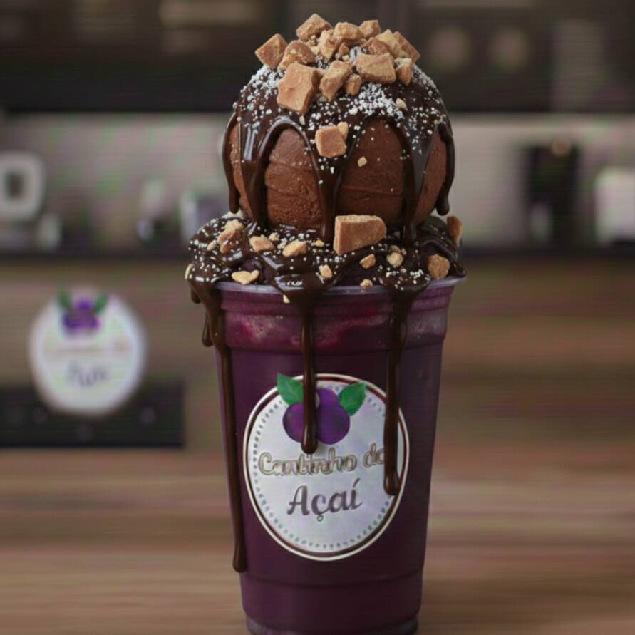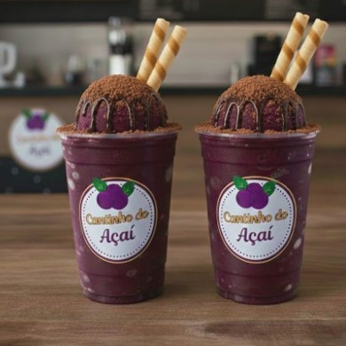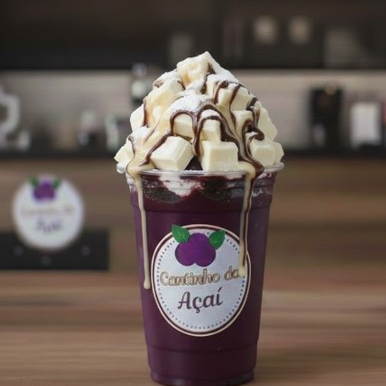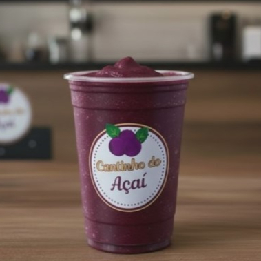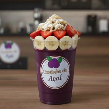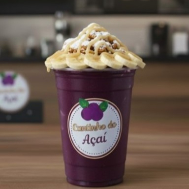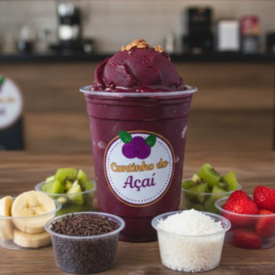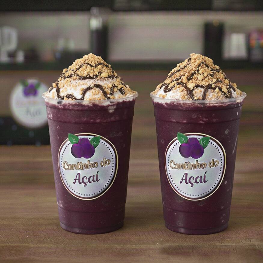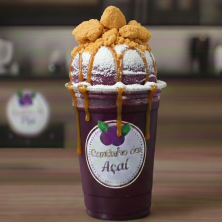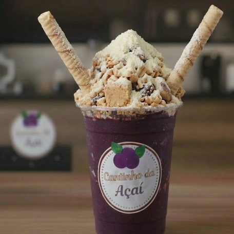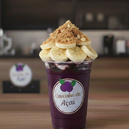 O delicioso creme de Açaí do Cantinho, acompanhado de Paçoca, Leite em pó e Cobertura de Caramelo. Os itens que compõe o açaí são enviados no pote juntamente com o creme de açaí. Os acréscimos pagos são enviados em potes separados.