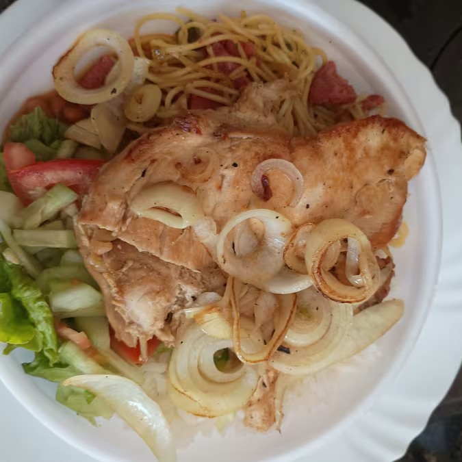 Bife de frango acebolado ,suculento .