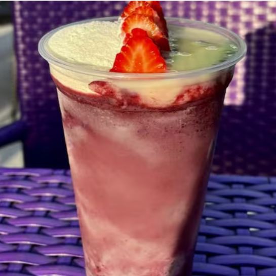 Açaí cremoso no copo de 500ml, combinado com leite em pó, leite condensado e morangos frescos. Uma explosão de sabor que une cremosidade e o toque refrescante da fruta. Energia e prazer em dobro a cada colherada!