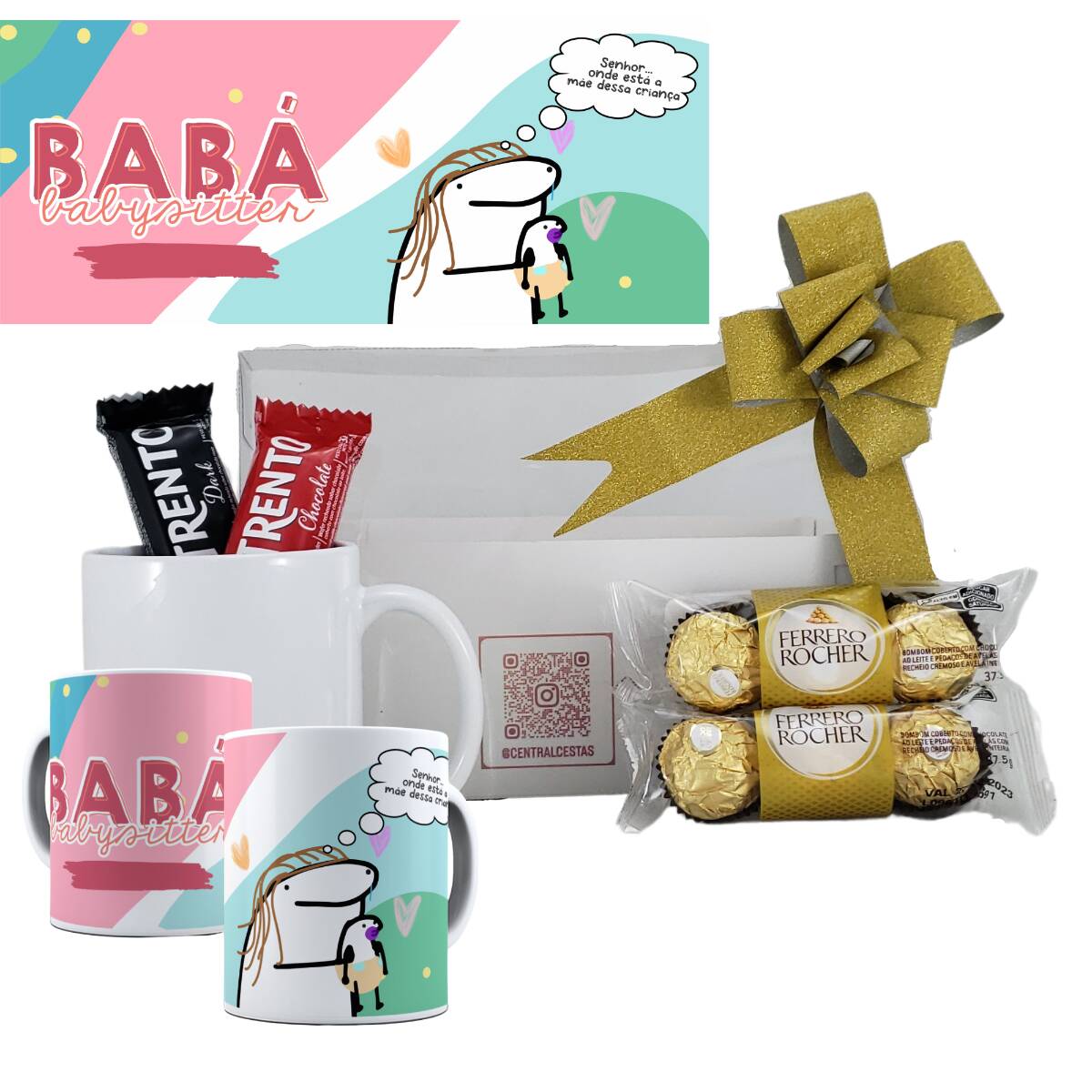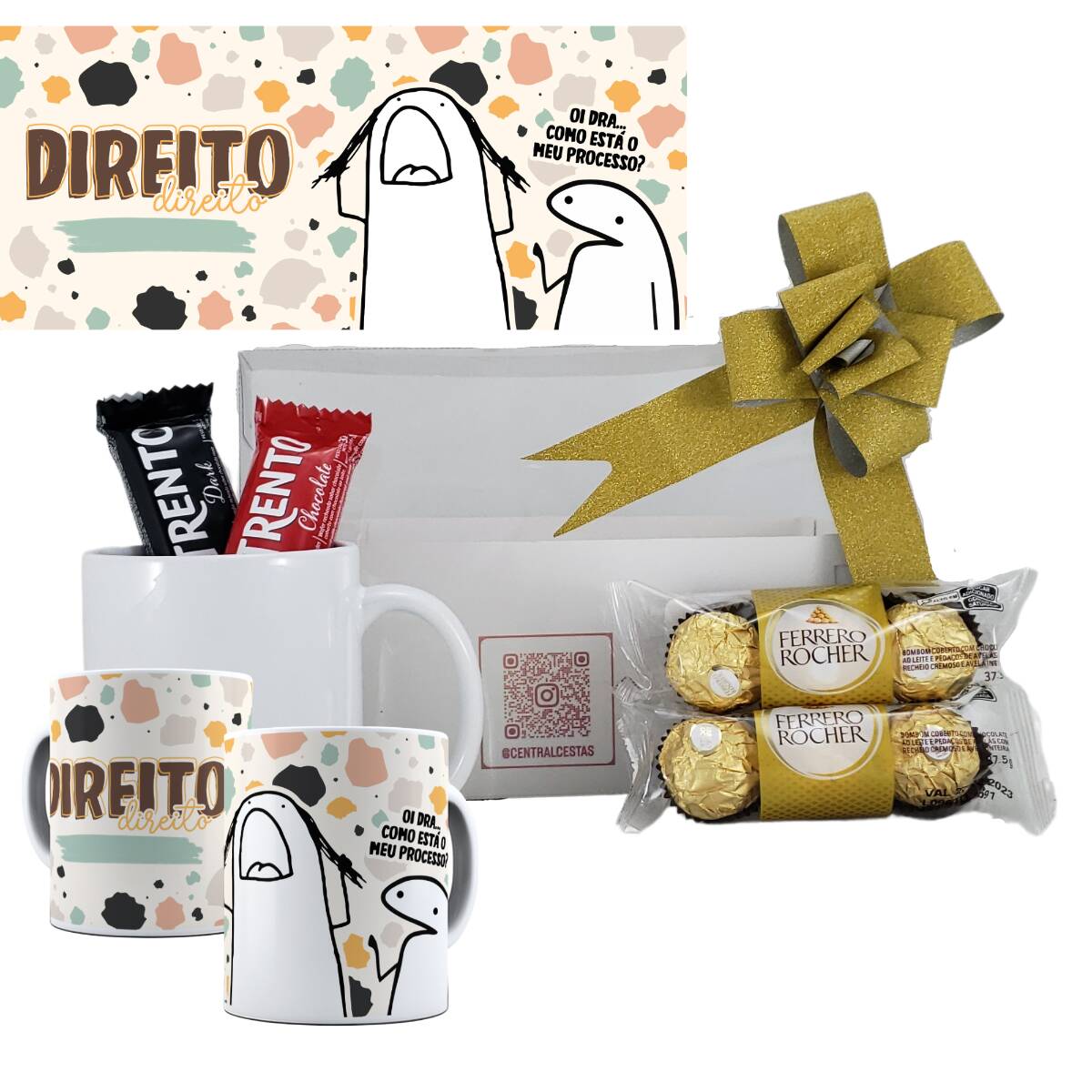 Box caneca Qtd: Item 1 - Caneca Ovelha 320ml 2 - Trento - 32g 2 - Ferrero T3 - 37,5g 1 - Cartão de Mensagem 1 - Caixa Box (22x15,5x9cm) 1 - Laço Total de 8 itens.