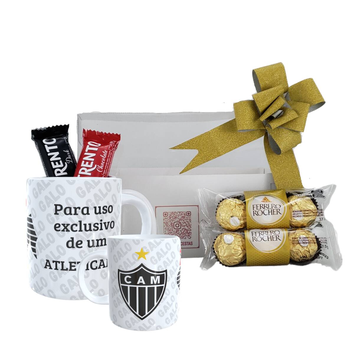 Box caneca Atlético Qtd: Item 1 - Caneca 320ml 2 - Trento - 32g 2 - Ferrero T3 - 37,5g 1 - Cartão de Mensagem 1 - Caixa Box (22x15,5x9cm) 1 - Laço Total de 8 itens.