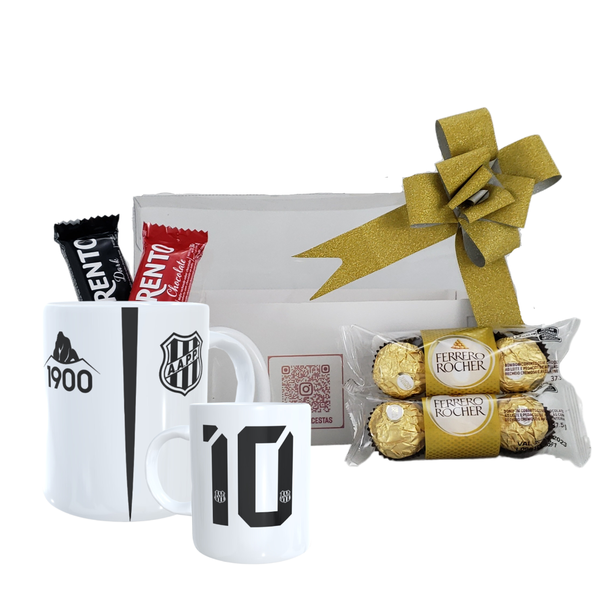 Box caneca Ponte Preta Qtd: Item 1 - Caneca - 320ml 2 - Trento - 32g 2 - Ferrero T3 - 37,5g 1 - Cartão de Mensagem 1 - Caixa Box (22x15,5x9cm) 1 - Laço Total de 8 itens.