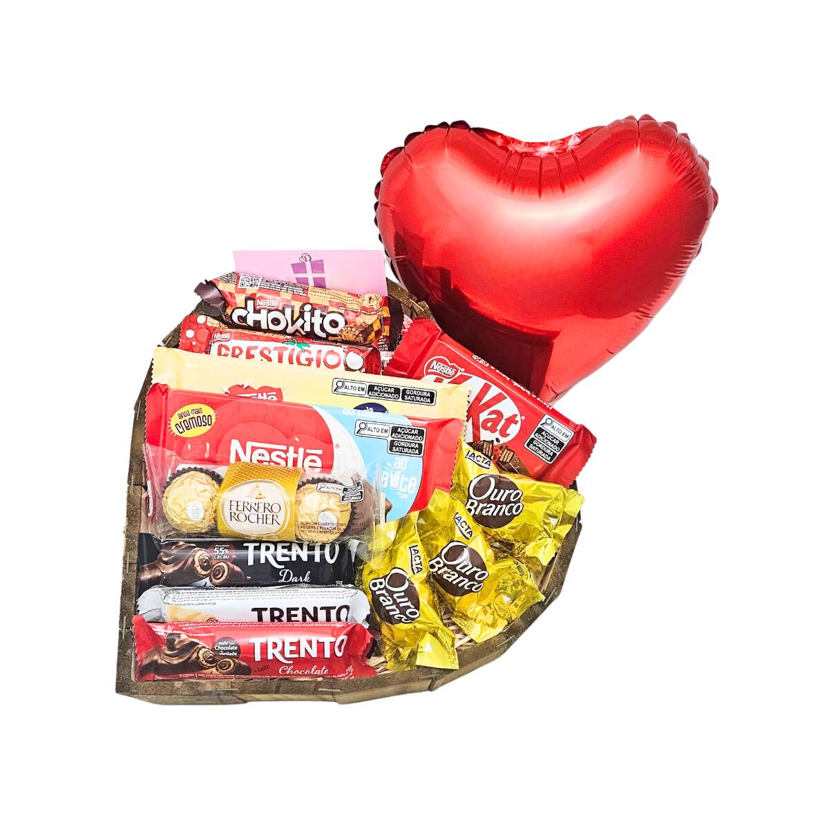 Cc81 Coração De Chocolate Qtd Item 1 FERRERO ROCHER T3 – 37,5g 1 CHOKITO NESTLÉ – 32g 1 PRESTÍGIO NESTLÉ – 33g 3 BOMBOM OURO BRANCO – 20g 1 KIT KAT – NESTLÉ – 41,5g 1 BARRA DE CHOCOLATE CLASSIC – NESTLÉ 80g 1 BARRA DE CHOCOLATE LAKA – NESTLE 80g 1 TRENTO – 29g 1 TRENTO DARK – 29g 1 TRENTO BRANCO – 29g 1 BALÃO METALIZADO 9″ – CORAÇÃO 1 CORAÇÃO DE MADEIRA (M) 1 CARTÃO DE MENSAGEM TOTAL DE 15 ITENS Obs.: Na falta de um dos itens acima o mesmo será substituído por outro de igual padrão e qualidade ___#Cesta #Petisco #Drinks #Presente #Doce #Salgadinho #Café #Manhã #Chocolate #Bombom #Nutella