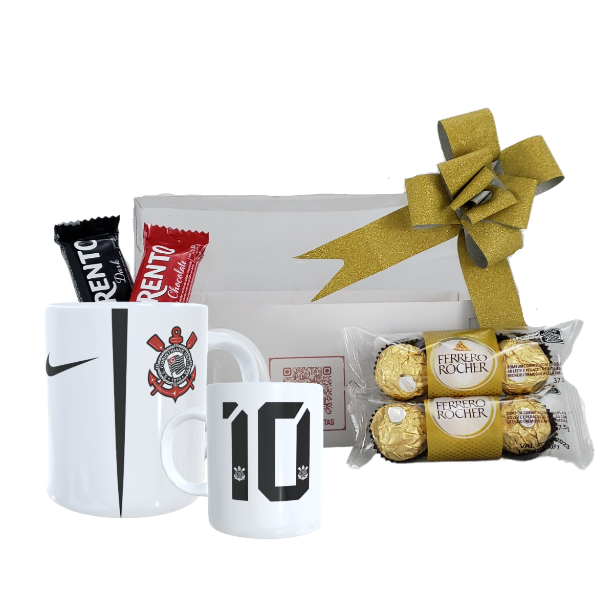 Box caneca Corinthians Qtd: Item 1 - Caneca - 320ml 2 - Trento - 32g 2 - Ferrero T3 - 37,5g 1 - Cartão de Mensagem 1 - Caixa Box (22x15,5x9cm) 1 - Laço Total de 8 itens.