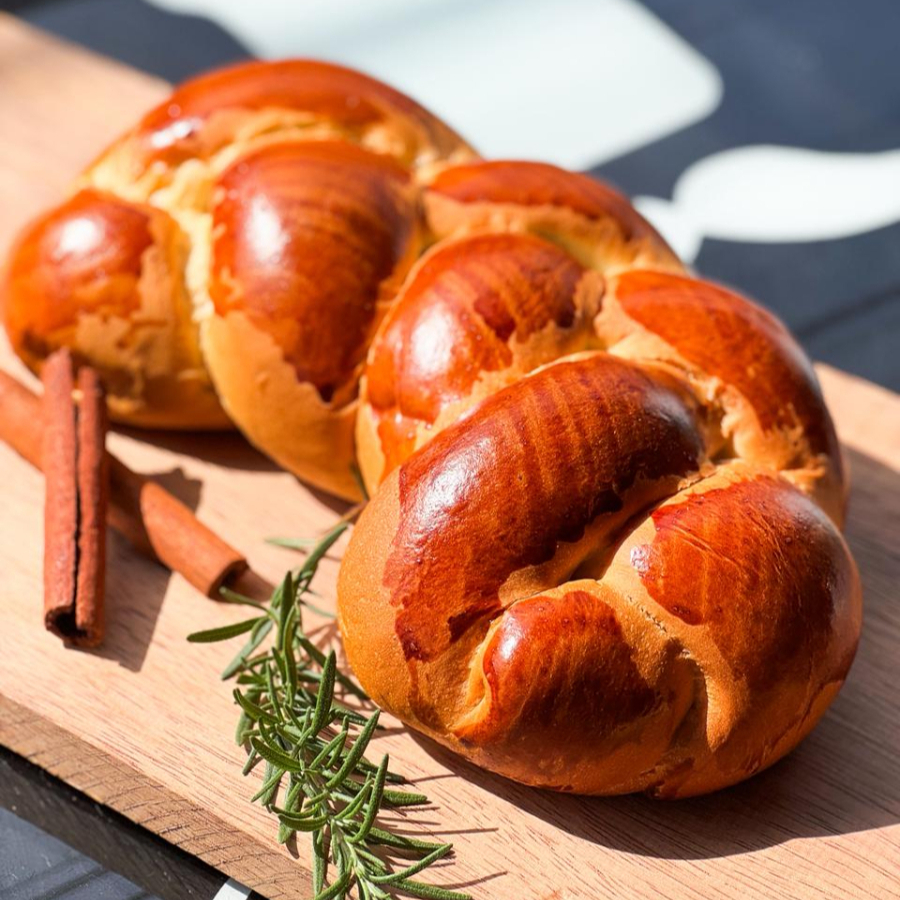 Preparada com uma receita de família passada por gerações, nossa Rosca da Rainha nasce de uma massa artesanal sovada à mão e enriquecida com uma infusão quente de chá de canela, feita na hora — responsável pelo aroma envolvente e pelo sabor marcante que derrete na boca. Assada em pequenos lotes para garantir frescor, ela chega até você fofinha por dentro, levemente dourada por fora e com aquele perfume acolhedor que lembra momentos especiais em casa.