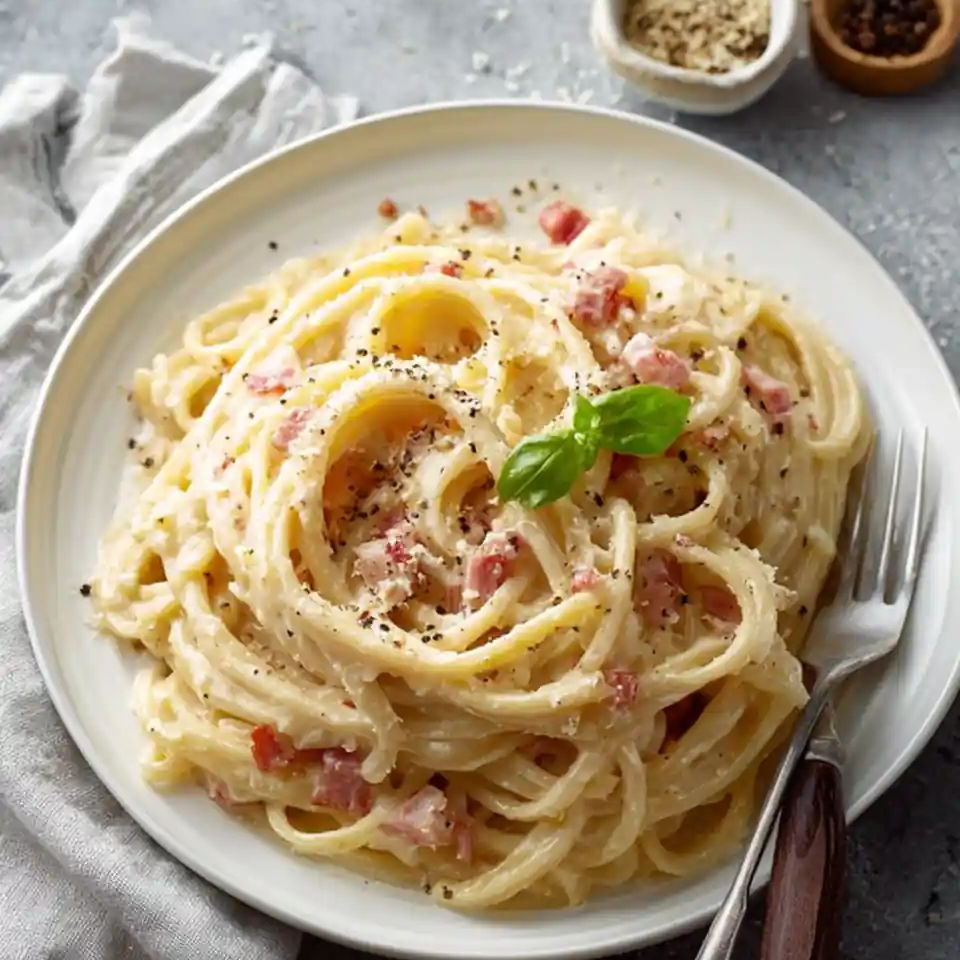 Espaguete Molho Branco Com Bacon