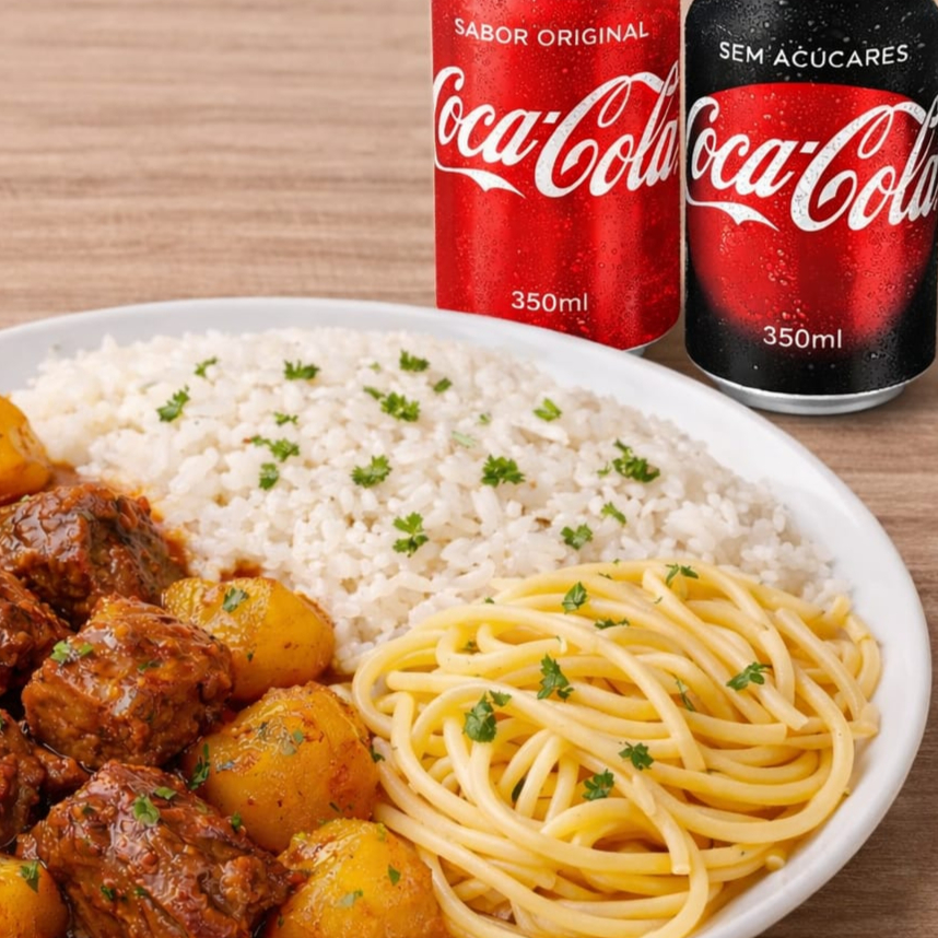 Um combo incrível de Strogonoff de Frango e Coca cola para você economizar. Leve mais e pague menos!