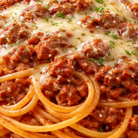 Delicioso espaguete ao molho bolonhesa caseiro, preparado com carne moída suculenta e bacon, refogado com cebola e cenoura bem fininha, que traz um equilíbrio ao sabor. Envolvido em um molho de tomate encorpado e bem temperado, finalizado com queijo derretido por cima, deixando o prato ainda mais cremoso e irresistível.