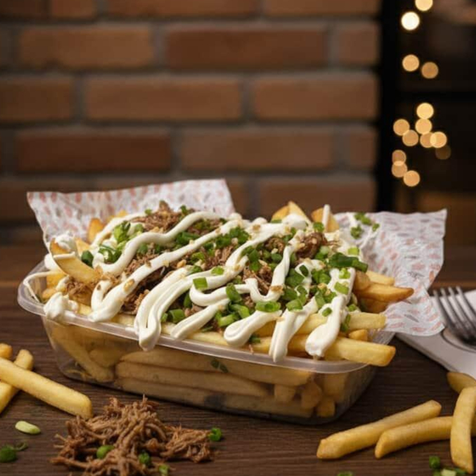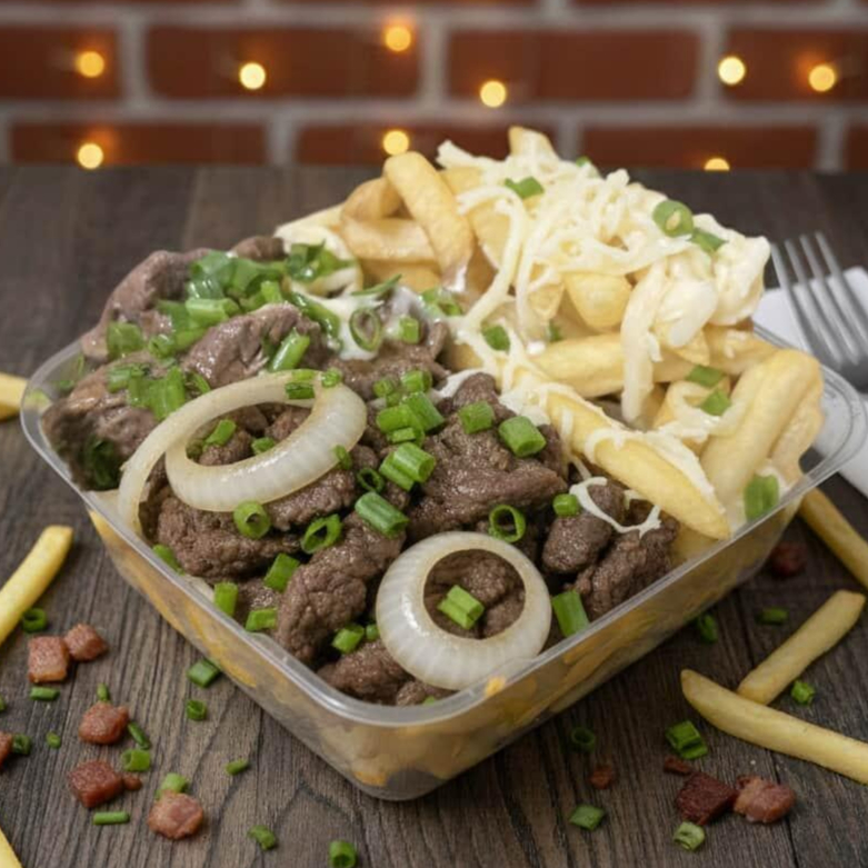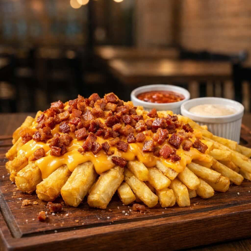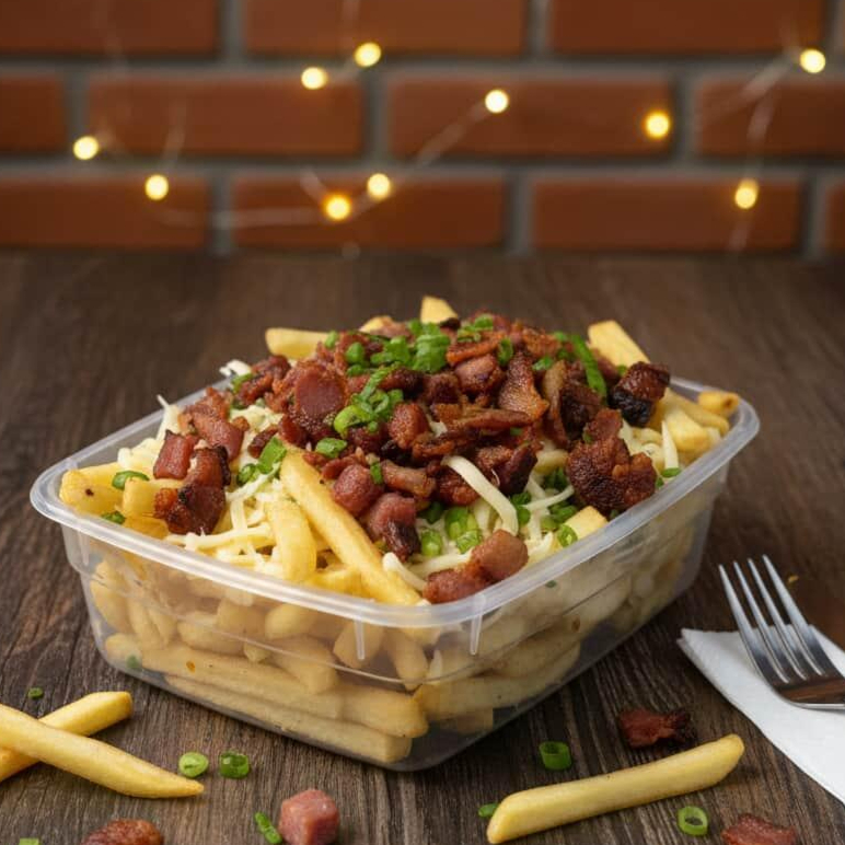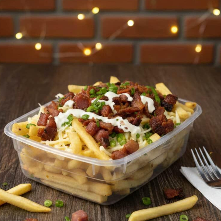 Batatas crocantes cobertas com nosso exclusivo creme de cheddar e bacon crocante.