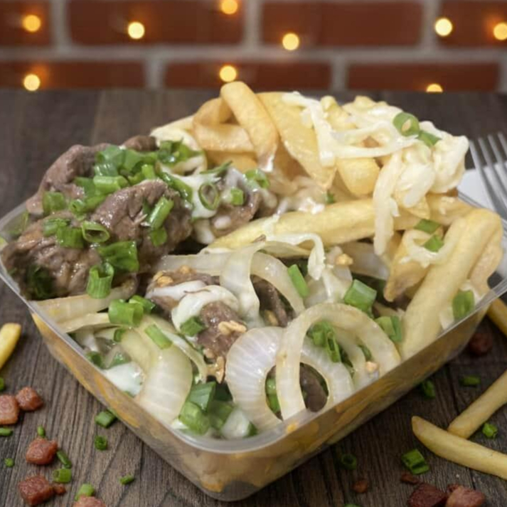 Nossas batatas crocantes cobertas com uma camada generosa de muçarela e bacon em cubos fritos na hora. O equilíbrio perfeito entre o queijo que derrete e a crocância do bacon