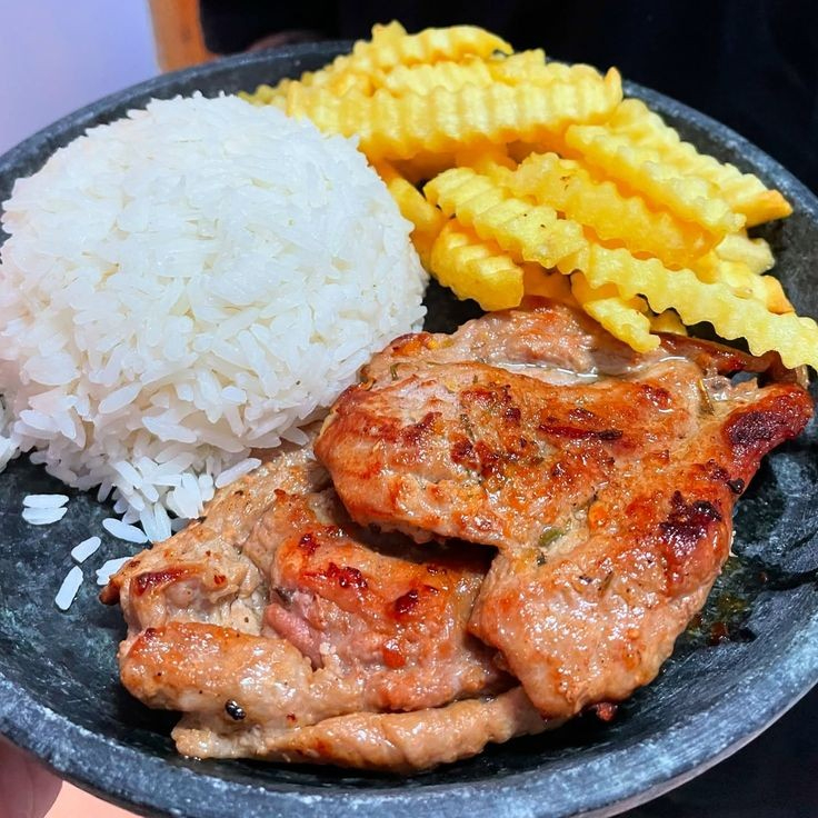 Acompanha: Arroz, Feijão, Espaguete, Batata Frita, Ovo Frito e Salada